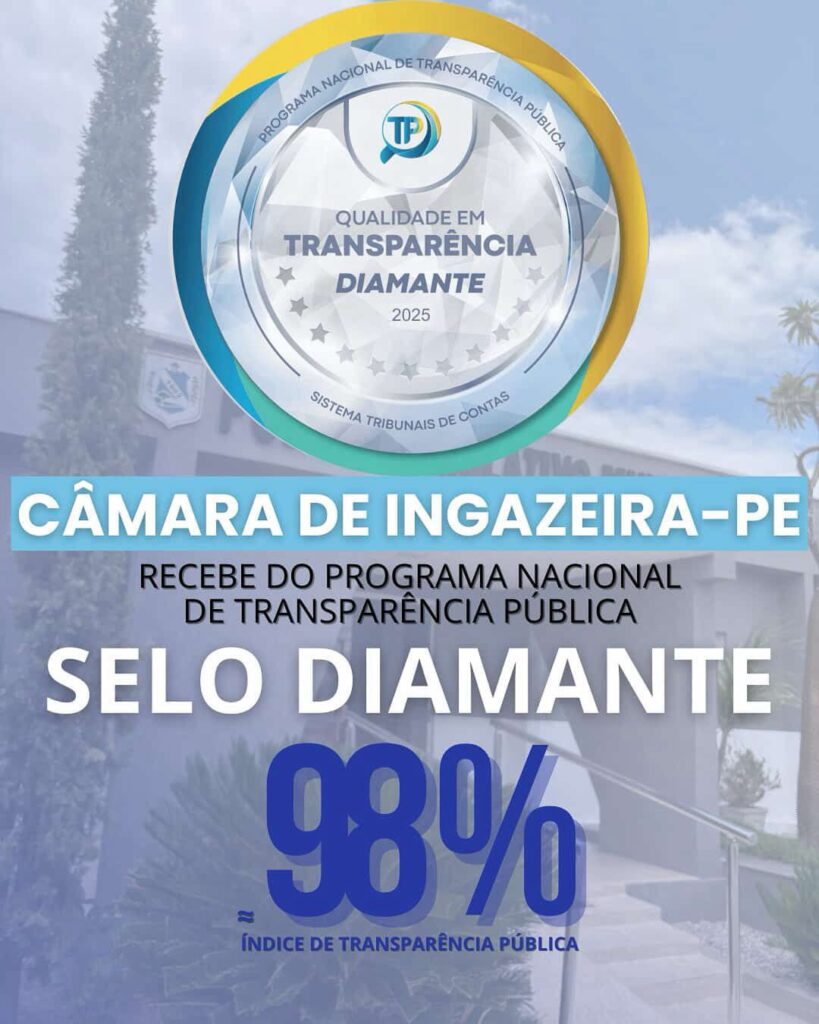 A Câmara Municipal de Ingazeira foi reconhecida com o Selo Diamante no Programa Nacional de Transparência Pública 2025, após alcançar aproximadamente 98% de conformidade nos critérios avaliados pelo Tribunal de Contas do Estado de Pernambuco.