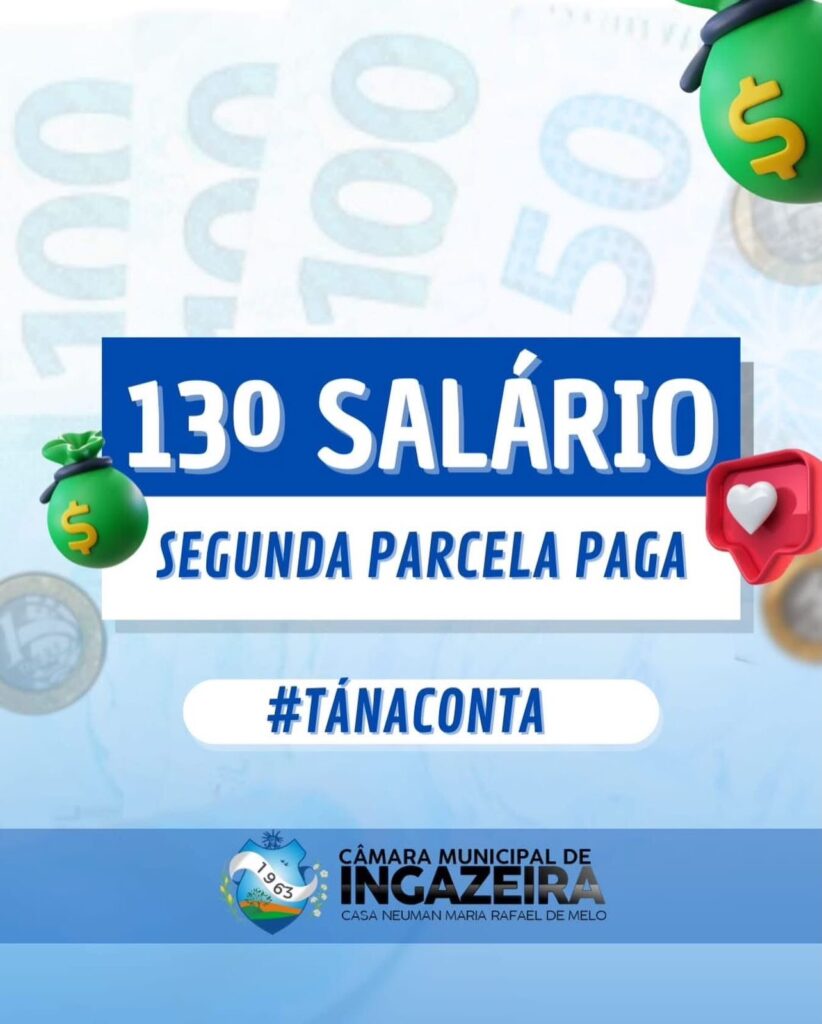 A Câmara Municipal da Ingazeira pagou nesta quarta-feira, 10 de dezembro, a segunda parcela do 13º salário de todos os servidores da Casa Legislativa. A ação reforça o compromisso da gestão com a valorização do funcionalismo e a administração responsável dos recursos públicos.