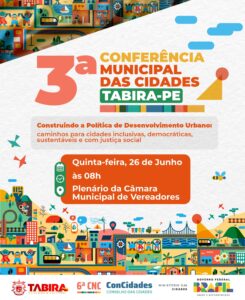 A Prefeitura de Tabira, por meio das Secretarias de Administração e de Planejamento e Gestão, convida toda a população a participar da 3ª Conferência Municipal das Cidades, um importante momento de escuta e construção coletiva de propostas para o futuro urbano do município. A Conferência compõe a etapa municipal da 6ª Conferência Nacional das Cidades. O evento será realizado na quinta-feira, dia 26 de junho, a partir das 8h, no Plenário da Câmara Municipal de Vereadores. A programação será conduzida por uma comissão organizadora composta por representantes da sociedade civil, do setor produtivo, entidades acadêmicas, organizações não governamentais, Defesa Civil e lideranças comunitárias. Com o tema “Construindo a Política de Desenvolvimento Urbano: caminhos para cidades inclusivas, democráticas, sustentáveis e com justiça social”, a Conferência abordará questões cruciais que afetam diretamente o cotidiano dos cidadãos tabirenses. Entre os eixos que serão debatidos estão: Habitação e Regularização Fundiária; Saneamento Básico; Mobilidade Urbana; Gestão Interfederativa; Sistema Nacional de Desenvolvimento Urbano (SNDU); Financiamento da PNDU; Controle Social e Gestão Democrática das Cidades; Sustentabilidade Ambiental e Emergências Climáticas; além da Transformação Digital e seus impactos nos territórios. Os participantes serão divididos em grupos temáticos, permitindo uma discussão mais aprofundada e colaborativa sobre os desafios e soluções para a realidade local. Ao final dos trabalhos, serão eleitos(as) os(as) delegados(as) que representarão Tabira na etapa estadual da Conferência das Cidades, prevista para agosto de 2025. As propostas aprovadas também seguirão para apreciação na Conferência Nacional, que acontecerá em outubro do mesmo ano. A convocação oficial da 3ª Conferência Municipal das Cidades foi realizada por meio do Decreto Municipal nº 030/2025, de 10 de junho de 2025. Participe! O futuro da cidade também passa pelas suas ideias.