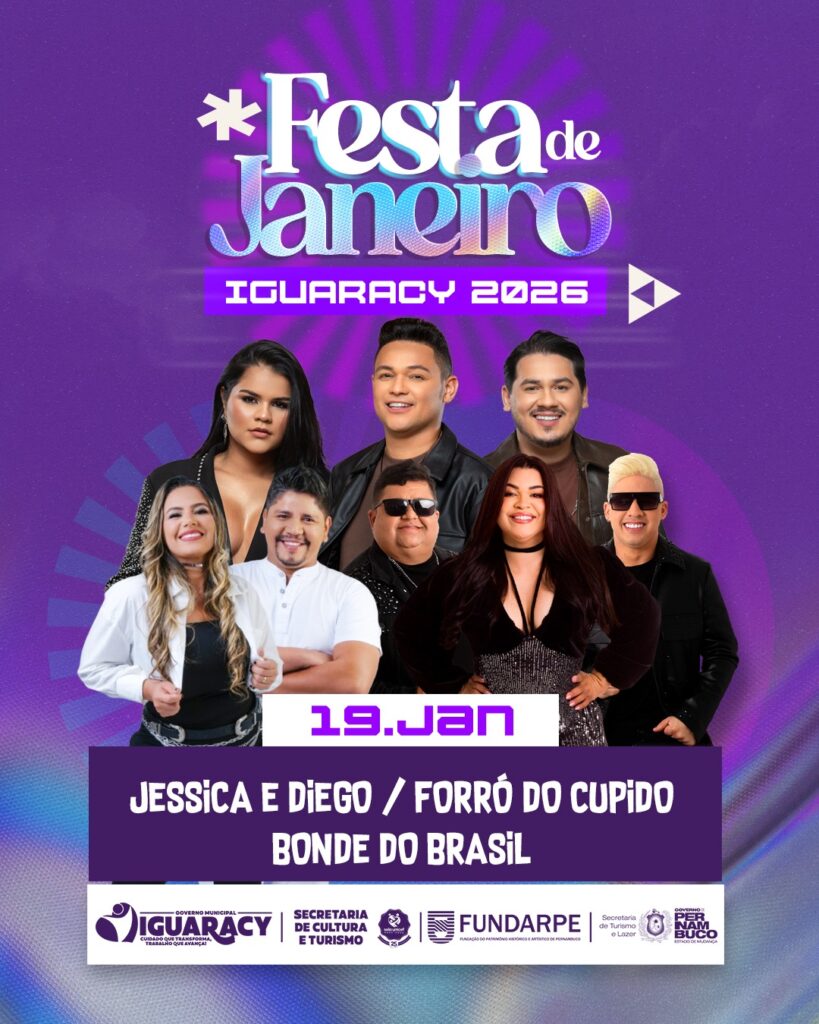 Após várias noites de muita música, cultura e animação, a Tradicional Festa de Janeiro 2026 de Iguaracy chega ao fim nesta segunda-feira, 19 de janeiro. A programação de encerramento acontece na Praça Antônio Rabelo, a partir das 22h, com shows de Jessica e Diego, Forró do Cupido e a aguardada apresentação da banda Bonde do Brasil, encerrando em grande estilo um dos maiores eventos do calendário cultural do município.