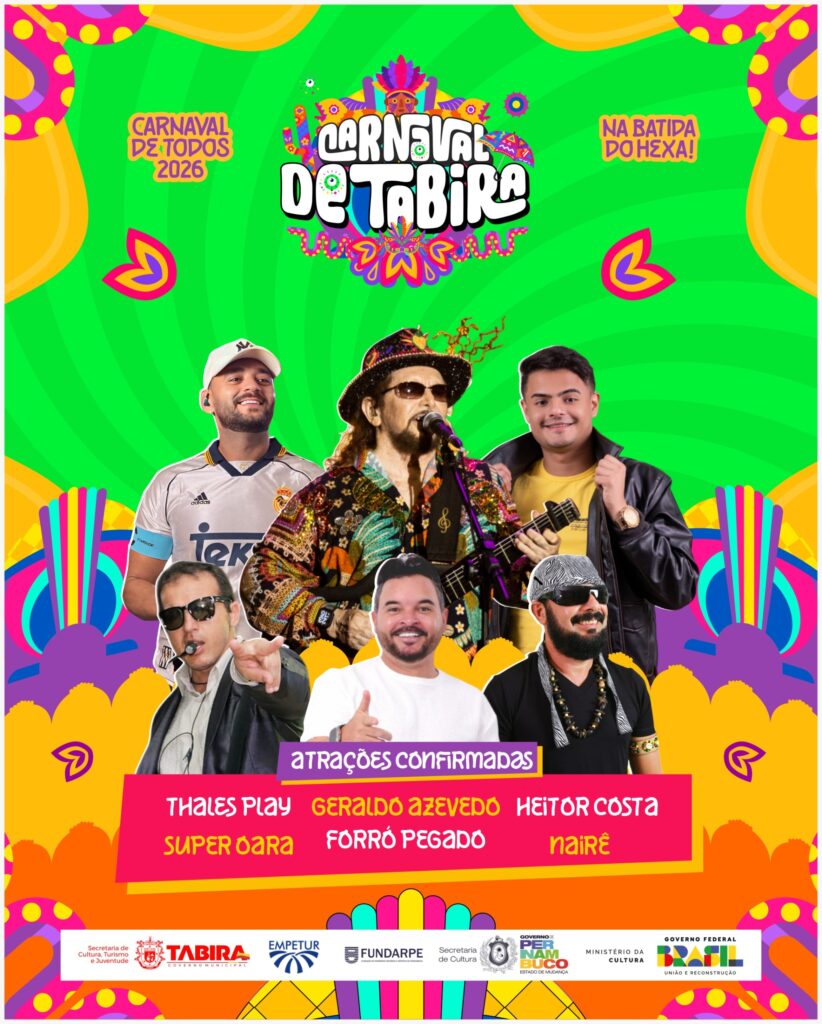 A Prefeitura de Tabira, por meio da Secretaria de Cultura, Turismo e Juventude, iniciou a divulgação das atrações que irão compor a programação do Carnaval 2026, que este ano traz o tema “Carnaval de Todos – Na Batida do Hexa!”.