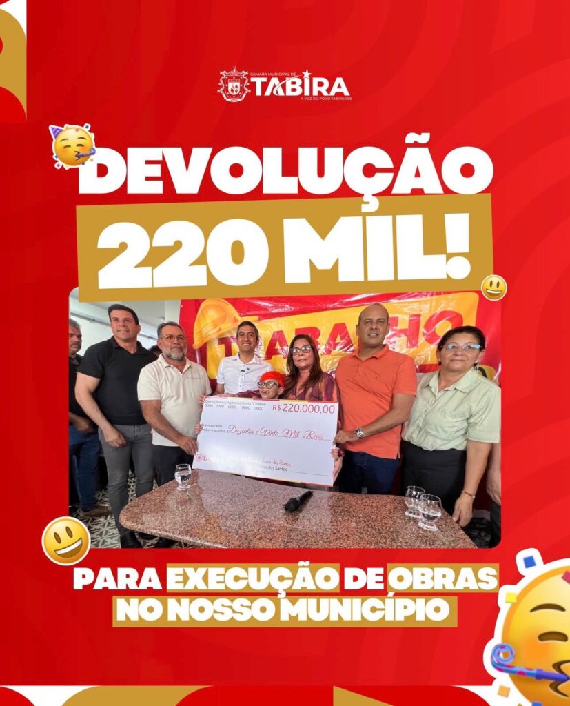 Mais uma importante devolução de recursos realizada pela Câmara Municipal de Tabira em benefício do nosso povo.