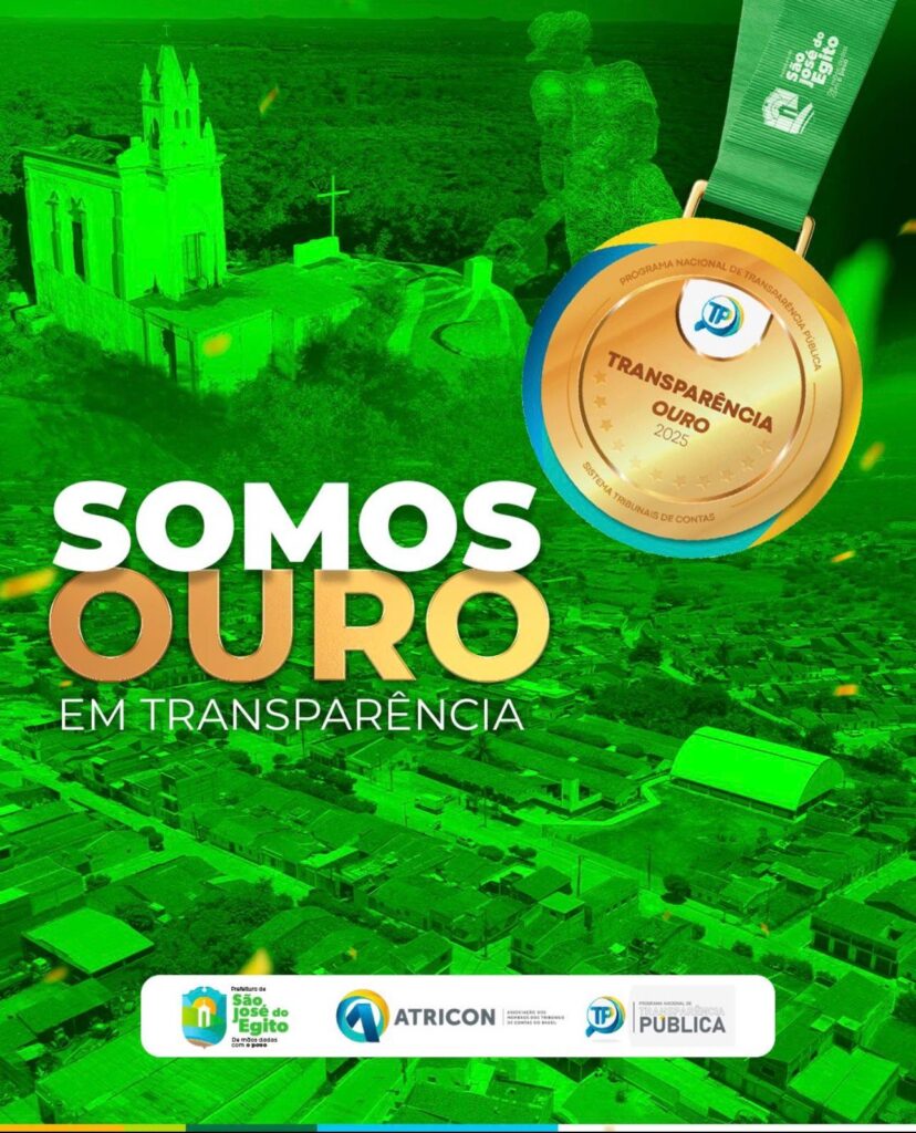 A Prefeitura de São José do Egito conquistou o Selo OURO de Qualidade em Transparência Pública – 2025, reconhecimento nacional concedido pela Associação Nacional dos Tribunais de Contas (ATRICON), dentro do Programa Nacional de Transparência Pública. O resultado consolida o município entre os que alcançaram alto nível de excelência nos critérios de acesso à informação, publicidade dos atos administrativos e prestação de contas à sociedade.
